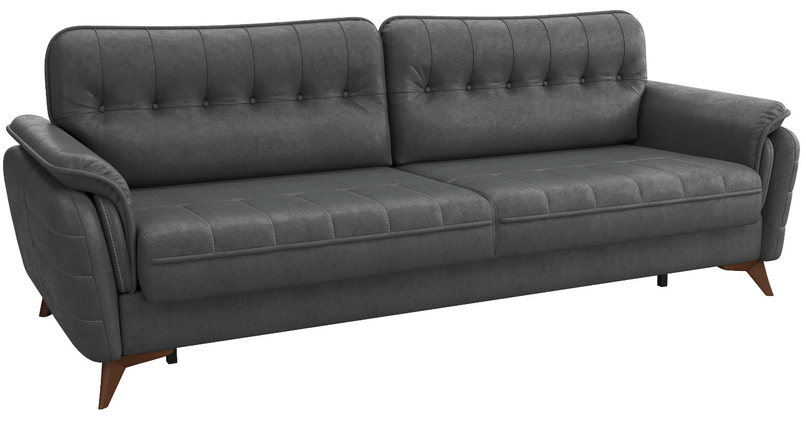 • Декоративные канты на подушках дивана, подлокотниках и сиденье. Стежка на передней части сиденья и внешней части подлокотника. Защипы на верхней части подушки. Втяжки с пуговицами на приспинных подушках.